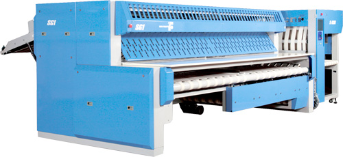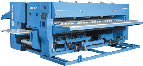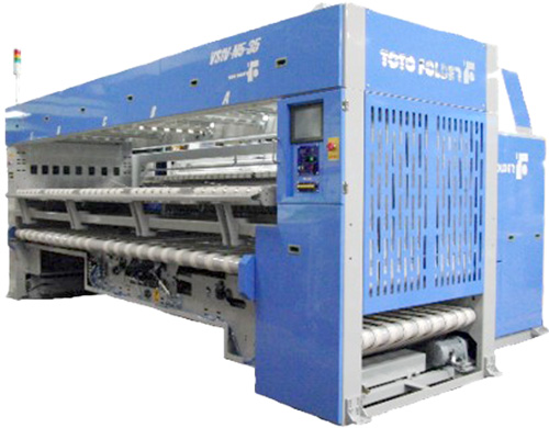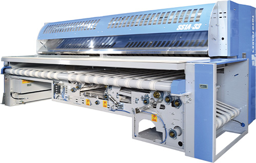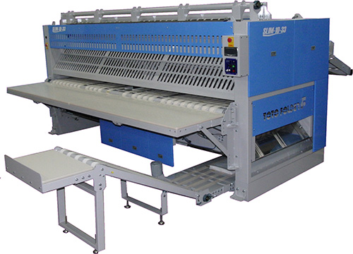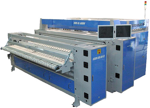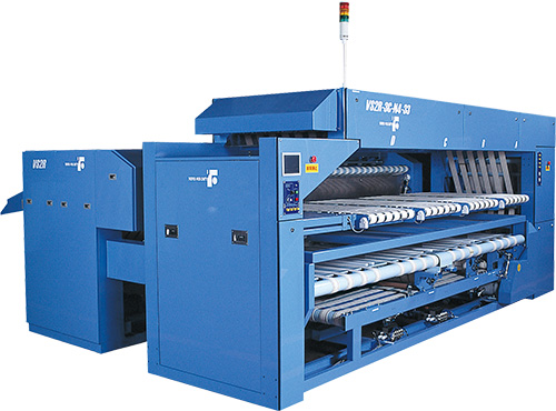 - Versatile processing selectable including setting up 1-lane for bed sheets and two-lane for draw sheets, etc.
